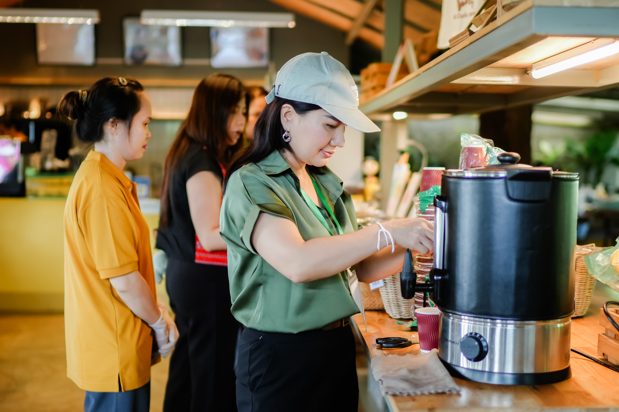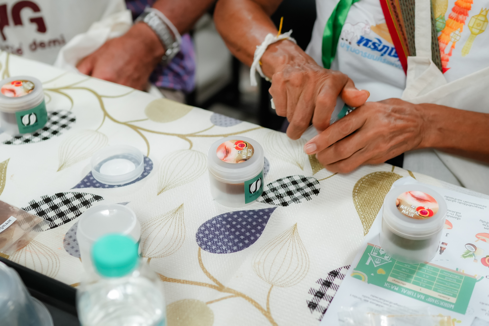 2. Workshop – สครับผิวสมุนไพรออร์แกนิก จากนั้น ณ WorldGrow A cafe’ demi ทุกท่านได้เข้าร่วมเวิร์กชอปทำ “สครับผิวสมุนไพรออร์แกนิก” ที่ได้ลงมือทำด้วยตัวเอง ตั้งแต่การเลือกส่วนผสมที่มาจากฟาร์มของเรา ไปจนถึงการผสมผสานจนได้เป็นสครับสูตรเฉพาะ บรรยากาศเต็มไปด้วยความสนุกสนาน ทุกคนได้แลกเปลี่ยนความคิดเห็นและผ่อนคลายไปกับกลิ่นหอมของสมุนไพร
